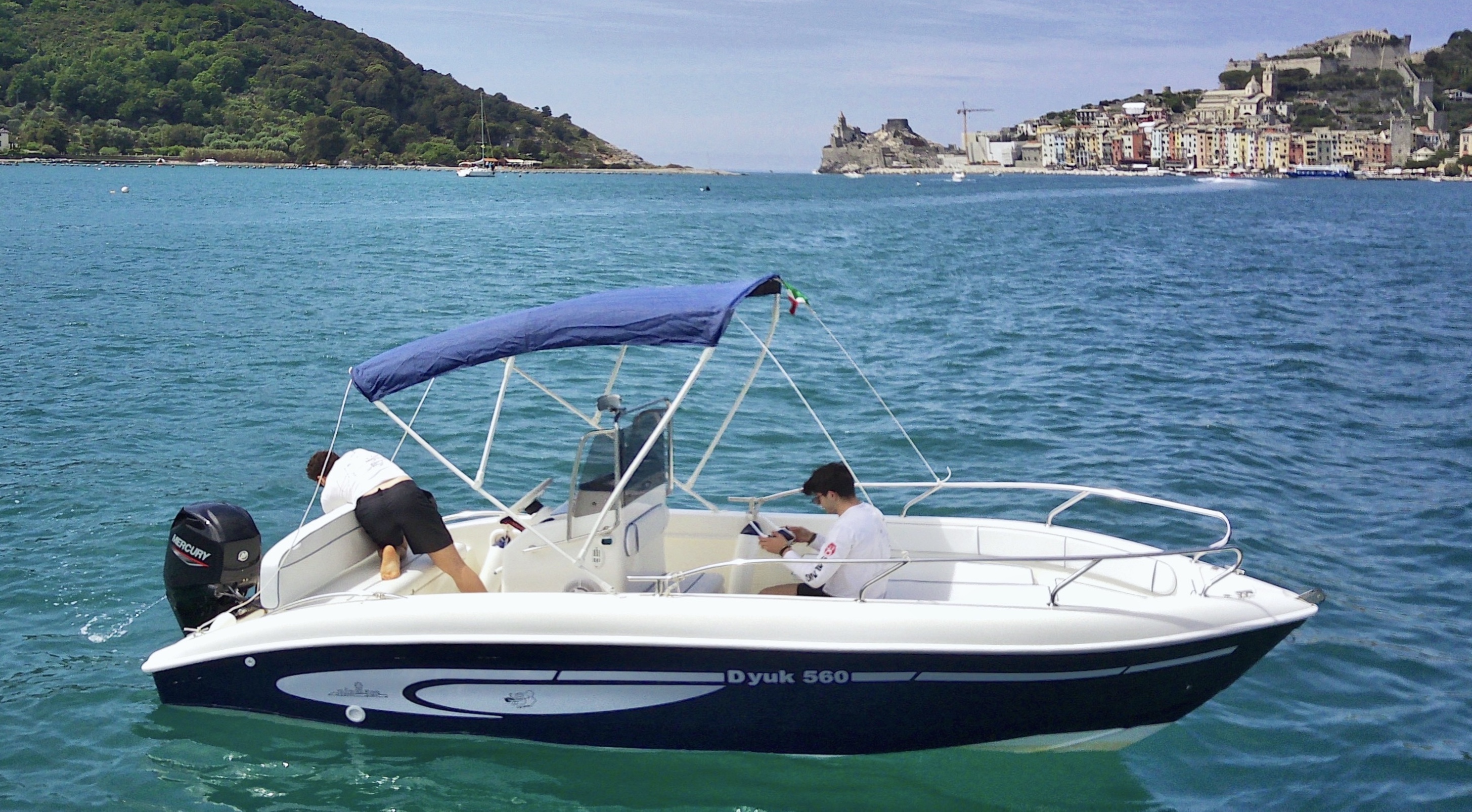 Our DYUK 560 is a sleek and sporty watercraft, perfect for agile navigation on the waters. With its spacious open bow area, it provides enough room to comfortably accommodate up to 7 guests and enjoy sunny days at sea. Thanks to its compact size, it is ideal for venturing into secluded bays and discovering hidden corners along the coastline.